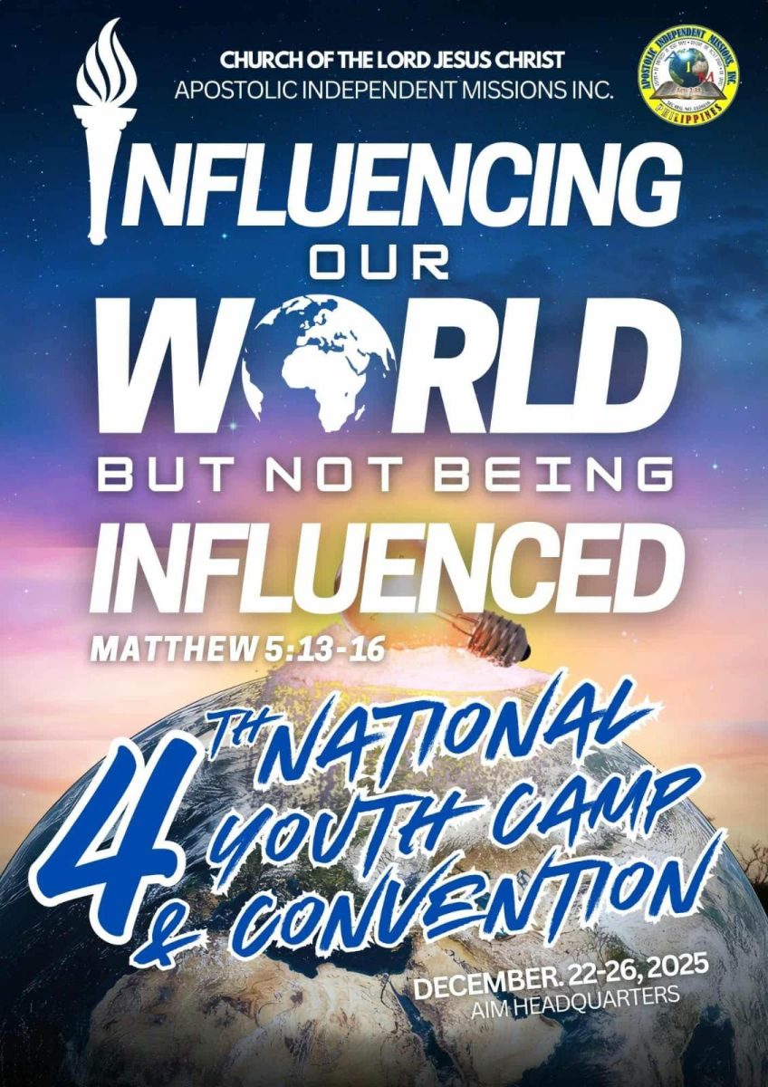 Traveling from all across the Philippines, the AIM youth came together at the National Headquarters for the 4th National Youth Camp and Convention, December 23-27, 2025 under the theme, Influencing Our World But Not Being Influenced (Matthew 5:13-15). The young people gathered together a great time of preaching, prayer, praise and worship, along with lots of fun and fellowship! The camp has grown to more than 200 youth, plus 20 pastors and almost +100 brethren to support the conference.